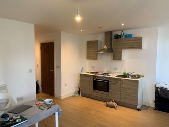 Briefly comprising of a secure entrance hall, leading into an open plan living and kitchen area, with a separate double bedroom area and modern bathroom. The kitchen includes a fridge with a freezer box, hob, cooker hood. Lift to all floors.
